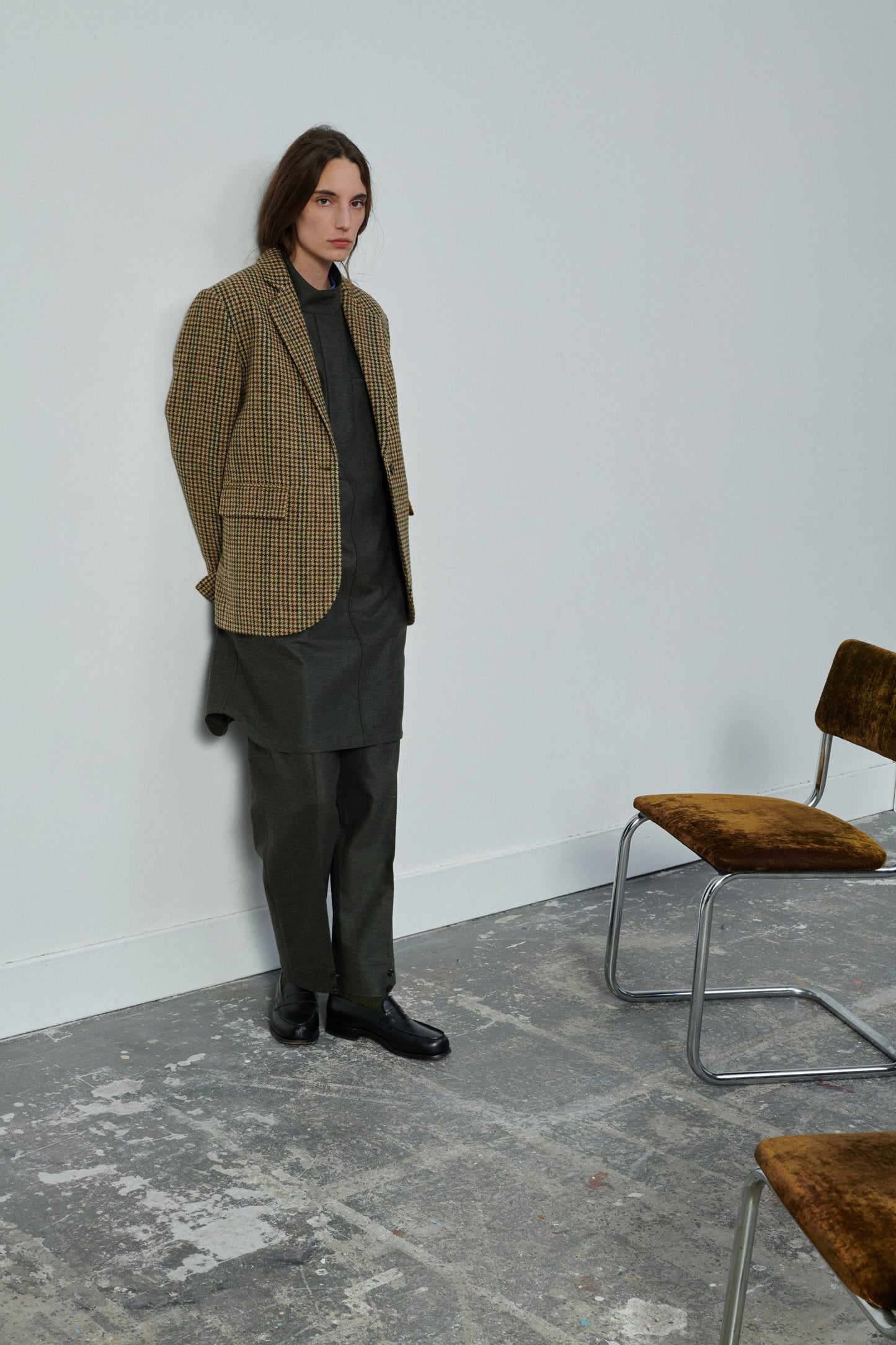Flannel dress - Straight cut- Concealed button placket- Welt pockets- Rounded sleeves