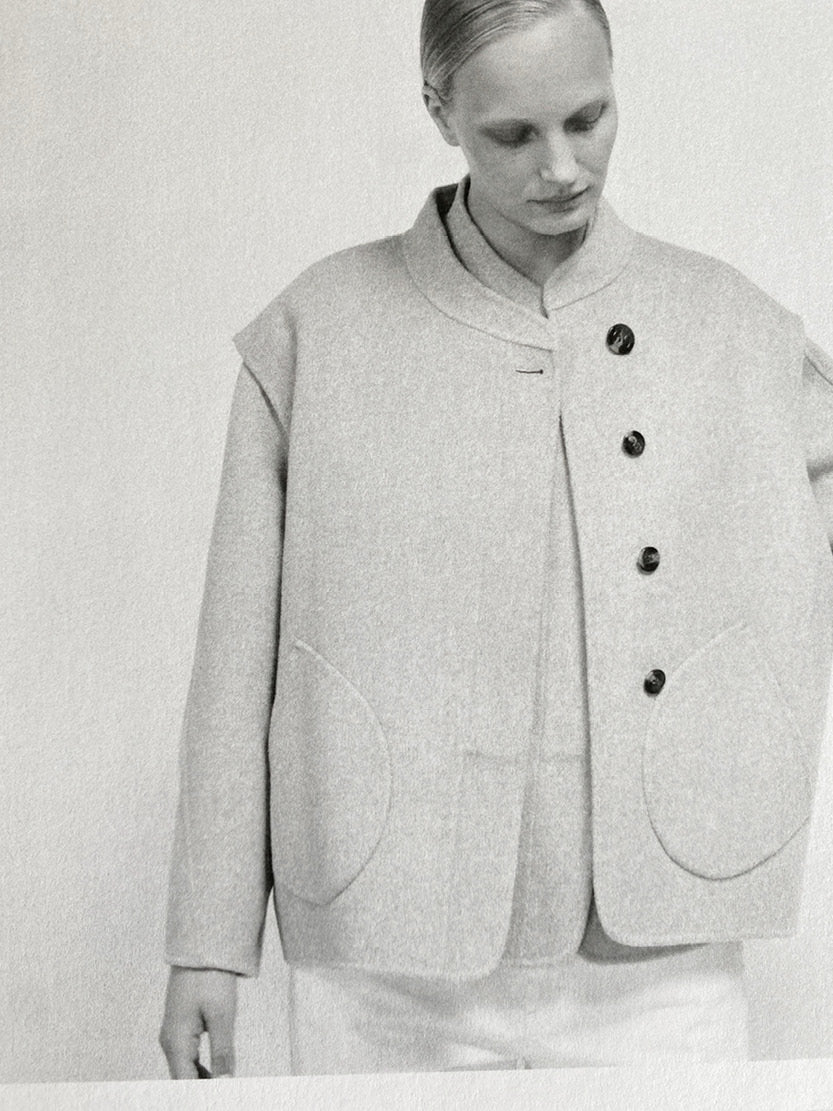 Souple, réversible, la double face se porte comme un pull ou comme un manteau selon la saison. Deux étoffes unies qui enveloppent le corps d’une matière douce, sophistiquée et confortable, pensée pour traverser les saisons.