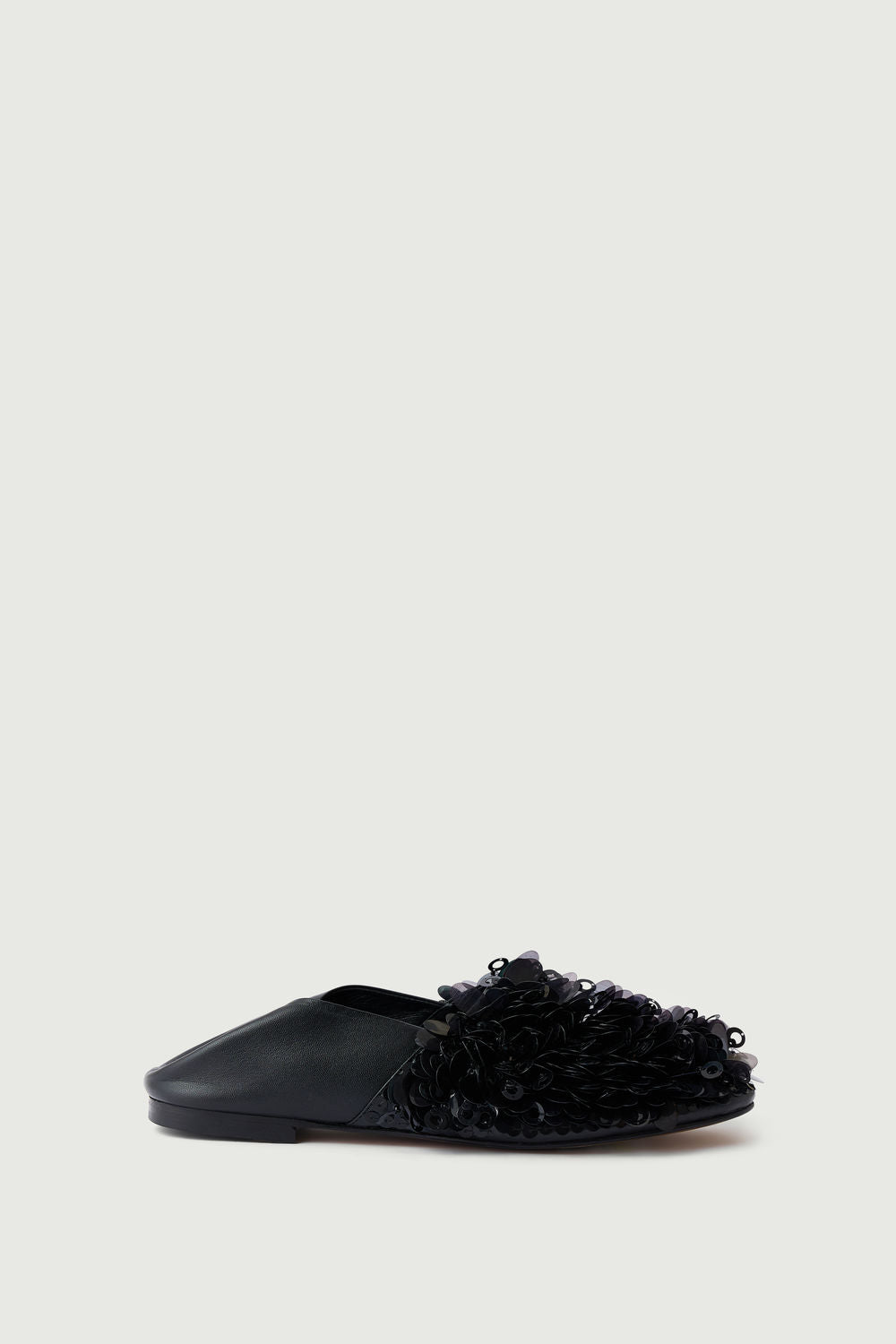 mocassins rosy Mocassins en cuir noir et sequins brodés