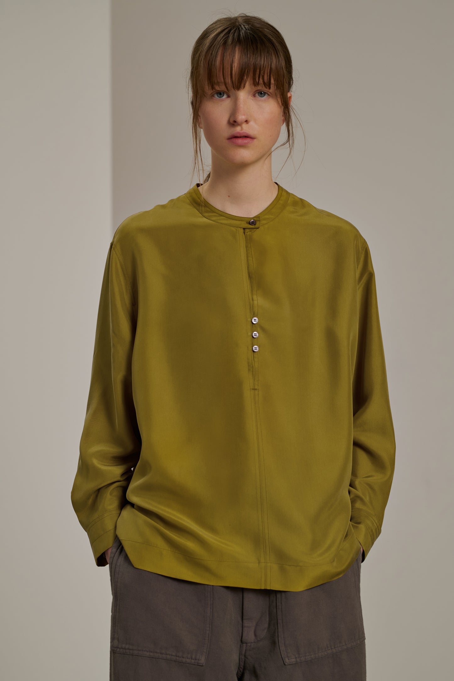 BADEN est une blouse en soie qui se distingue par sa coupe droite, offrant une silhouette élégante et intemporelle. Idéale pour des occasions variées, cette blouse en soie allie confort et style avec une élégance discrète.