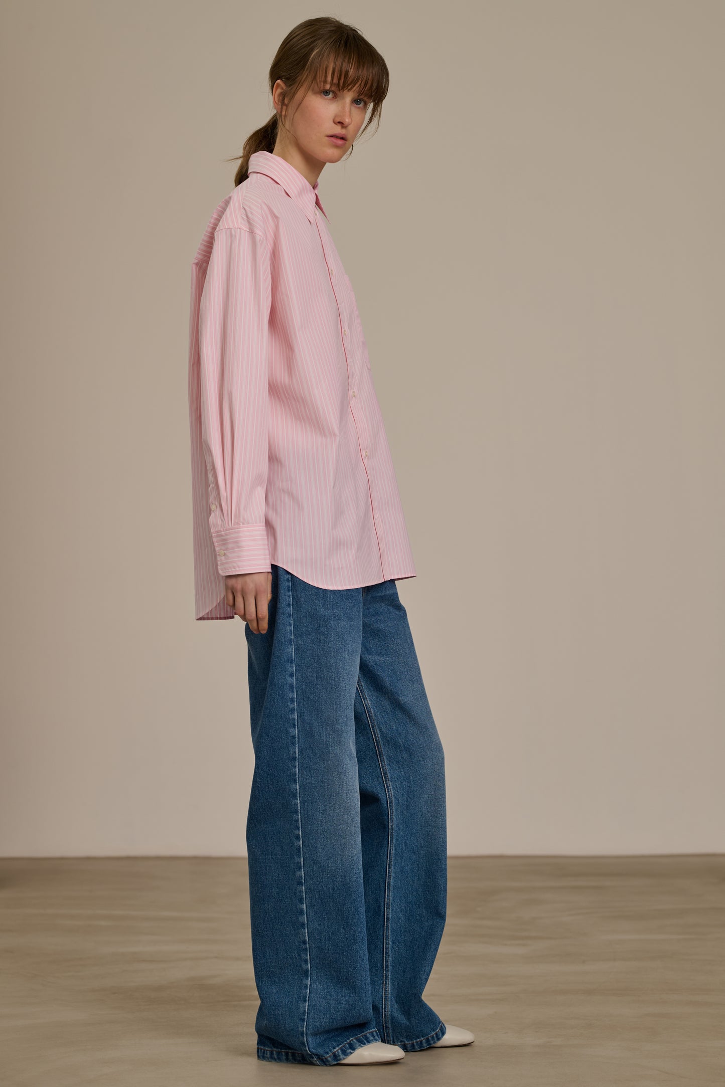 CARLOTTA est une chemise en popeline rayée qui joue sur une coupe oversize inspirée du vestiaire masculin, pour un style décontracté et élégant.