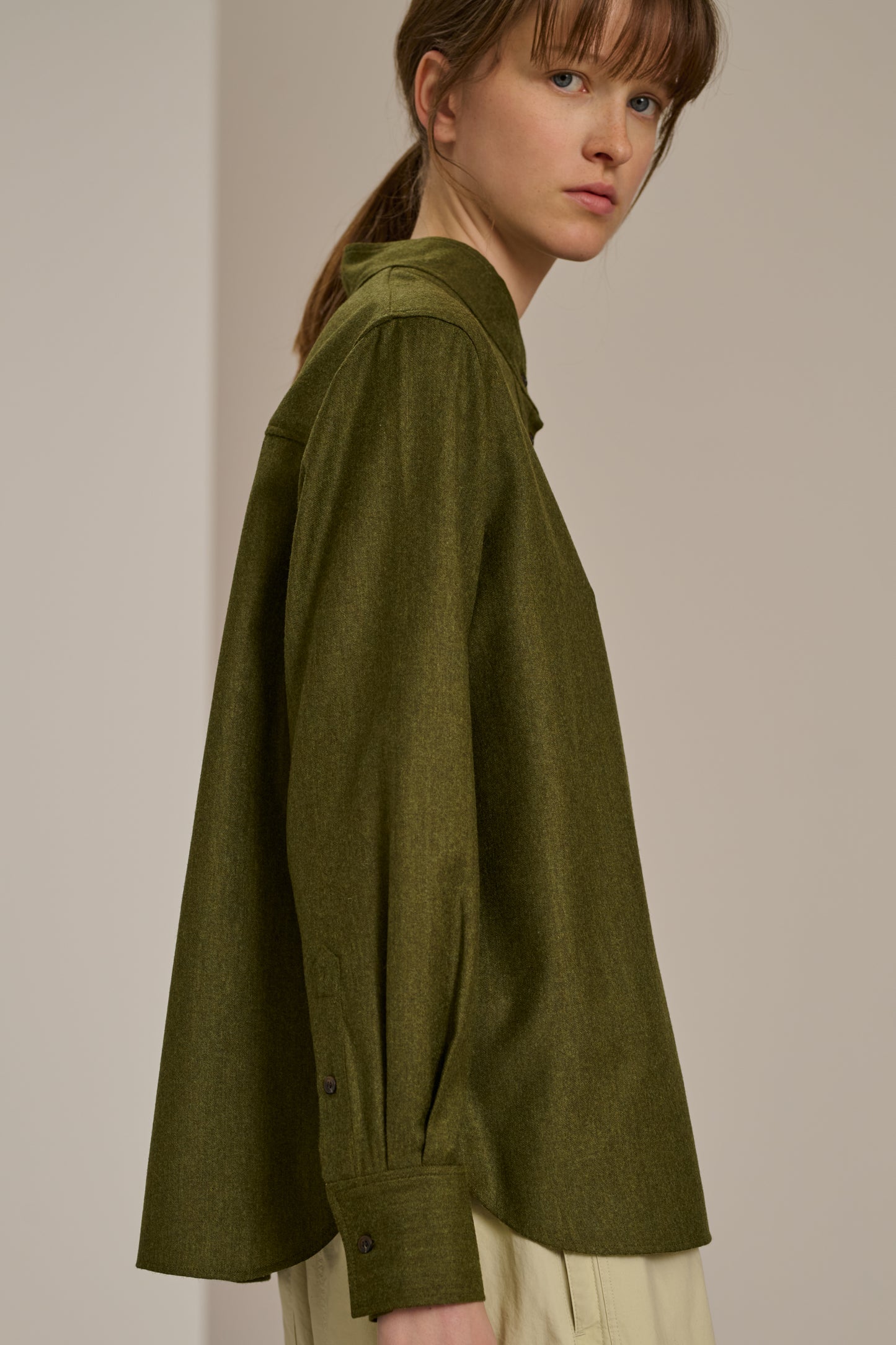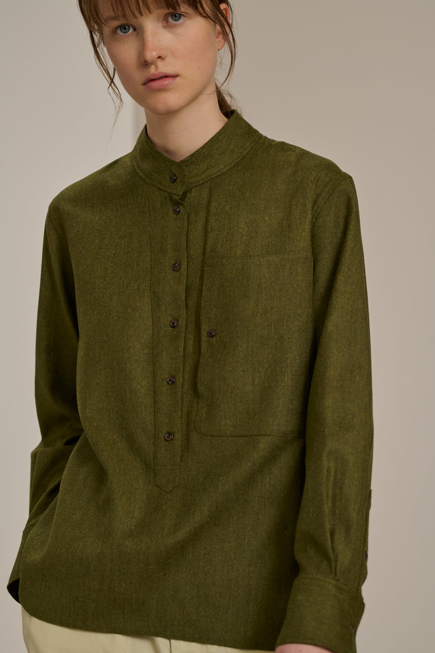 Blouse en flanelle chinée légère kaki