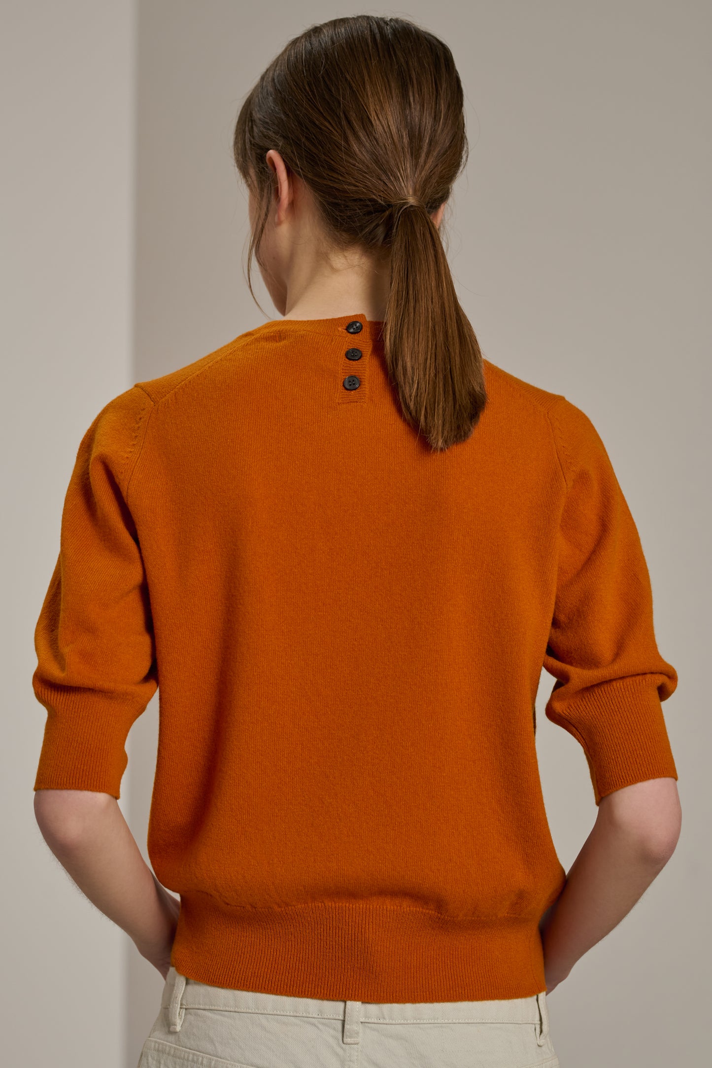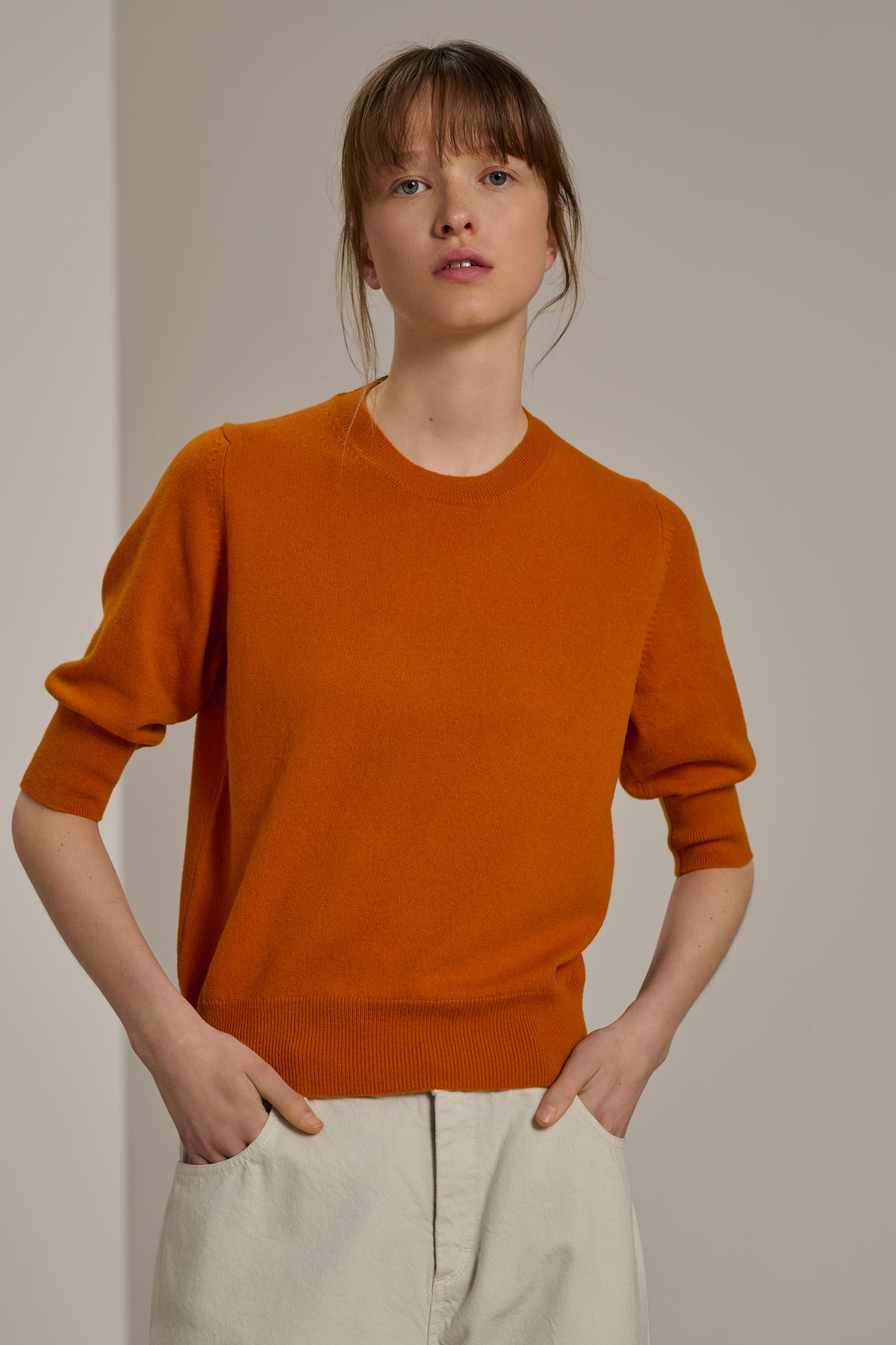 Pull manches courtes en cachemire orange