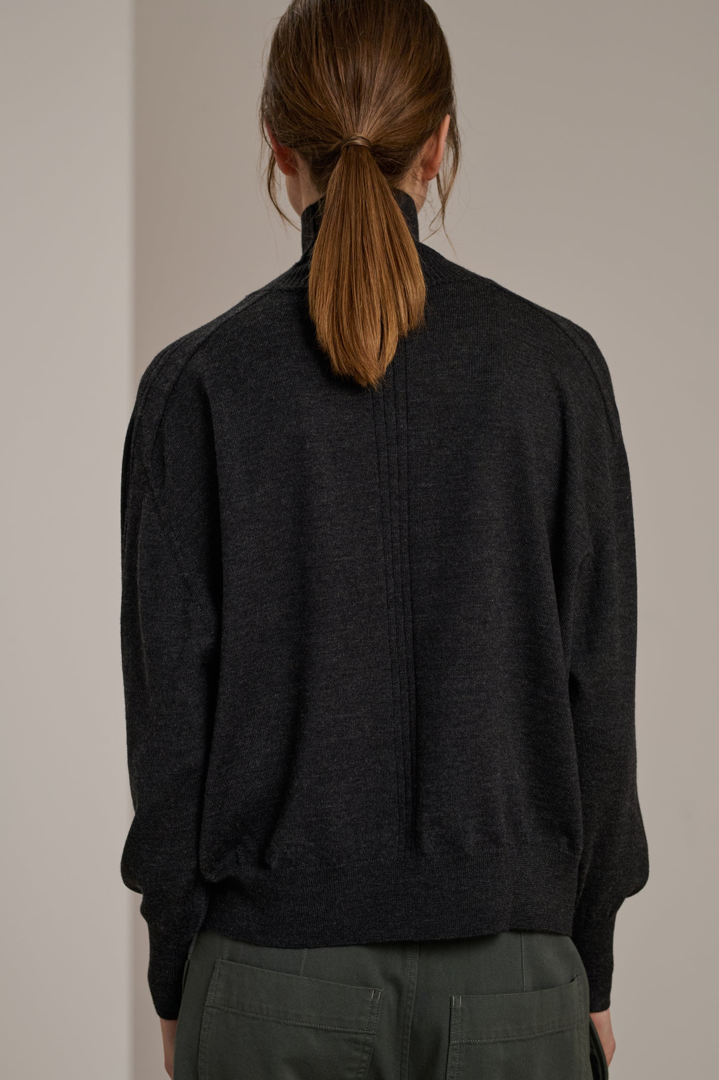 NORD est un pull en laine mérinos qui s'intègre parfaitement dans un vestiaire intemporel. Ce col roulé oversize offre une coupe ample et confortable, à porter à même la peau ou en superposition. De nombreuses finitions signent son identité Soeur : un jeu de côtes court au-devant et le long des manches, le col et les poignets sont tricôtés en côtes fines.