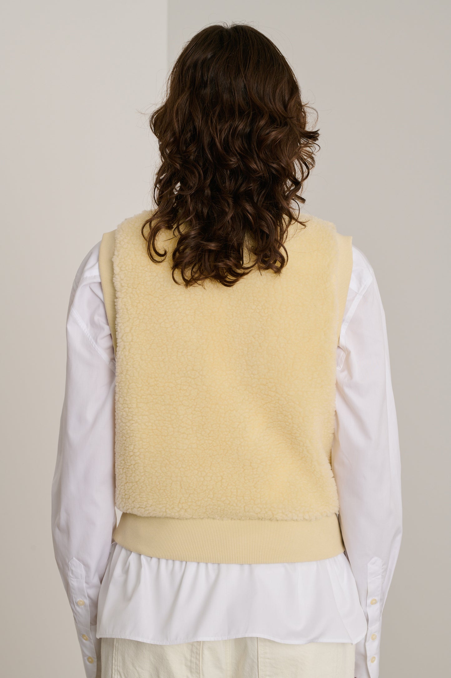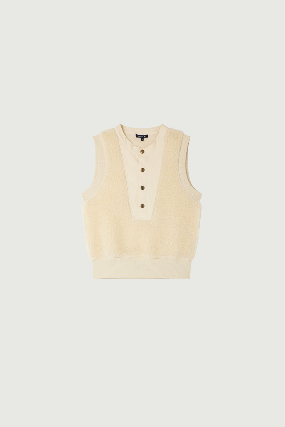 BAILA est un sweat-shirt sans manches en fausse fourrure. Sa coupe droite, subtilement resserrée au bas du corps, dessine une silhouette élégante tout en offrant une liberté de mouvement . Idéal pour superposer ou porter seul, ce sweat-shirt allie chaleur et style.